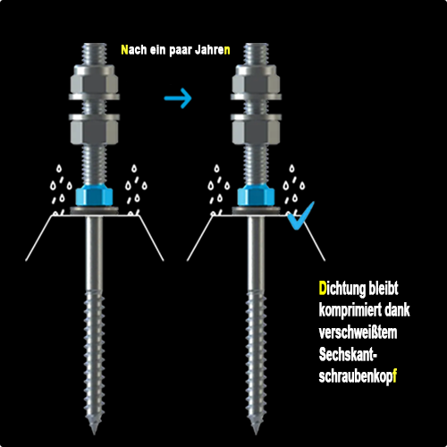 - Verbindungsmittel zur Befestigung von Photovoltaik- und Solaranlagen zur Einleitung der Dachlast in die Holzunterkonstruktion.